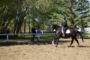 The last day was at von Platen farms with Mare Inspection and Performance Test; three mares completed studbook inspection and entered into the main studbook. All four mares (1 from BC and 3 from Alberta) all completed the three stages of the Mare Performance Test: Free Jumping, Owner/Rider presentation, and Test Rider pattern. Andrea Harris graciously returned as our test rider. Although, it was a windy day, the sun was shining making it a pleasant September day, and all four mares completed their test.